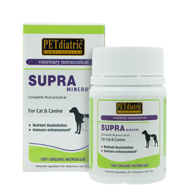 PETdiatric® Laboratories Supra Mineral is a concentration of the nutrients in the heart of organic microalgae. It contains a supra block of amino acids that is a vital building blocks for healthy nerve cells and neurotransmitters for your pet’s optimal brain and nervous system function.
